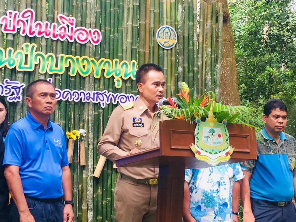 วันนี้ (28 สิงหาคม 2561) เวลา 09.00 น. นายถาวรวัฒน์ คงแก้ว รองผู้ว่าราชการจังหวัดภูเก็ต เป็นประธานเปิดโครงการป่าในเมือง"สวนป่าประชารัฐเพื่อความสุขของคนไทย" สวนป่าบางขนุนจังหวัดภูเก็ต ณ สวนป่าบางขนุน อำเภอถลาง จังหวัดภูเก็ต โดยมีหัวหน้าส่วนราชการ พี่น้องประชาชน ผู้บริหารองค์กรปกครองส่วนท้องถิ่นเข้าร่วม เป็นจำนวนมาก นายถาวรวัฒน์ คงแก้ว รองผู้ว่าราชการจังหวัดภูเก็ตกล่าวว่า ตามที่ พลเอกประยุทธ์ จันทร์โอชา นายกรัฐมนตรีได้ตระหนักถึงความสำคัญของทรัพยากรป่าไม้ที่ให้คุณประโยชน์ต่อประเทศชาติและประชาชนในด้านต่างๆอย่างมากมายจึงมีนโยบายให้พัฒนาป่าในเขตเมืองโดยเป็นสถานที่ออกกำลังกายเป็นแหล่งศึกษาเรียนรู้เป็นแหล่งท่องเที่ยวพักผ่อนหย่อนใจช่วยลดมลภาวะสร้างสภาพแวดล้อมที่ดี และสร้างความสุขให้ประชาชน ดังนั้นกระทรวงทรัพยากรธรรมชาติและสิ่งแวดล้อมจึงมอบหมายให้หน่วยงานต่างๆในสังกัดร่วมจัดการจัดทำโครงการ"ป่าในเมืองสวนป่าประชารัฐเพื่อความสุขของคนไทย" ขึ้น โดยกรมป่าไม้ได้สนองแนวนโยบายของกระทรวงทรัพยากรธรรมชาติและสิ่งแวดล้อมกำหนดให้มีโครงการป่าในเมืองสวนป่าประชารัฐเพื่อความสุขของคนไทยโดยมีเป้าหมายเพื่อพัฒนาพื้นที่ป่าไม้และพื้นที่ปลูกต้นไม้ที่ตั้งอยู่ในเมืองหรือใกล้เมืองเป็นพื้นที่ดำเนินการซึ่งไม่ได้พัฒนาเฉพาะด้านป่าไม้เพียงด้านเดียวแต่รวมถึงการปรับปรุงสิ่งอำนวยความสะดวก,เส้นทางศึกษาธรรมชาติ,ป้ายสื่อความหมาย,ลานกิจกรรม,ลานกีฬา,เส้นทางวิ่ง-เดิน หรือการออกกำลังกายรูปแบบต่างๆร่วมกับองค์กรปกครองส่วนท้องถิ่น ภาคเอกชนและประชาชนในรูปแบบป่าในเมืองเพื่อให้เยาวชน,นักเรียน,นักศึกษาและประชาชนทั่วไป สามารถใช้ประโยชน์เป็นสถานที่ออกกำลังกายเป็นแหล่งท่องเที่ยวและพักผ่อนหย่อนใจเป็นแหล่งเรียนรู้ทางด้านต่างๆอีกทั้งเป็นการเสริมสร้างสุขภาพที่ดีและสร้างความสุขให้กับประชาชนด้วย โดยในส่วนของจังหวัดภูเก็ตกรมป่าไม้ได้เลือกสวนป่าบางขนุนดำเนินโครงการป่าในเมืองสวนป่าประชารัฐเพื่อความสุขของคนไทย ซึ่งถือได้ว่าป่าแห่งนี้มีความเหมาะสมเป็นอย่างยิ่งเพราะมีสภาพแวดล้อมและสภาพธรรมชาติที่มีความพร้อมที่จะพัฒนาศักยภาพได้อย่างดียิ่ง อีกทั้งเป็นสถานที่ซึ่งไม่ห่างไกลเมืองประชาชนและเยาวชน สามารถเดินทางเข้าไปใช้ประโยชน์ในพื้นที่ได้อย่างสะดวก
