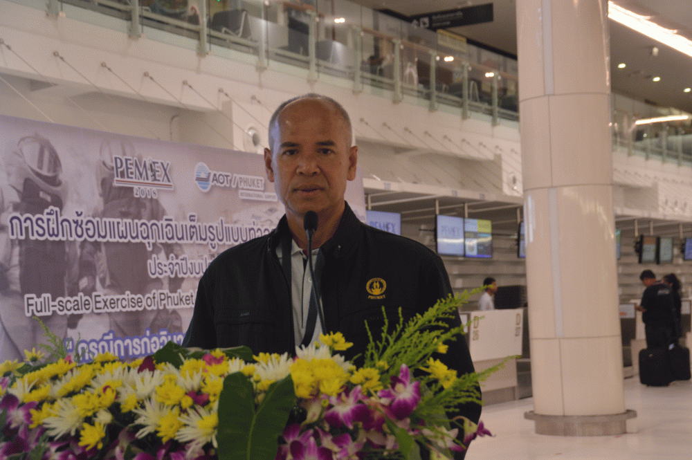 นายสนิท ศรีวิหค รองผู้ว่าราชการจังหวัดภูเก็ต กล่าวว่า ท่าอากาศยานภูเก็ตกำหนดวิสัยทัศน์ในการดำเนินการเพื่อเป็นท่าอากาศยานที่ดีระดับโลกโดยมุ่งเน้นการให้บริการที่สะดวกและปลอดภัยดังนั้น การฝึกซ้อมแผนฉุกเฉินเต็มรูปแบบท่าอากาศยานในวันนี้ถือเป็นการเตรียมความพร้อมเพื่อทดสอบความพร้อมของบุคลากร ความถูกต้องของขั้นตอน และเป็นการทดสอบขีดความสามารถของเครื่องมืออุปกรณ์ต่างๆพร้อมทั้งเพื่อให้ผู้ฝึกซ้อมได้เรียนรู้ขั้นตอนต่างๆเพื่อให้สามารถทำงานได้อย่างมีประสิทธิภาพตามแผนปฏิบัติการ ซึ่งจะเป็นการสร้างความเชื่อมั่นให้แก่นักท่องเที่ยวและผู้ใช้บริการของท่าอากาศยานภูเก็ตได้เป็นอย่างดี