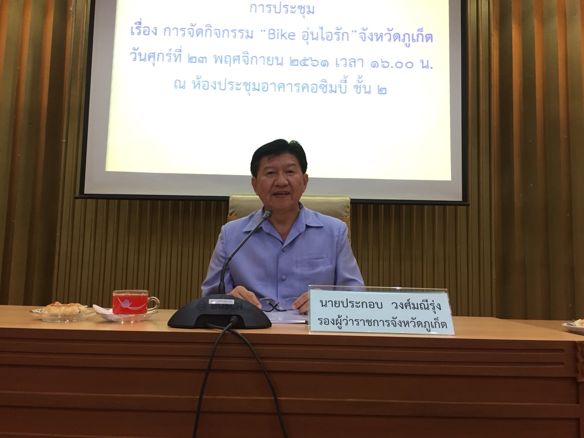 เวลา 16.00 น.วันนี้ (23 พย.61) ที่ห้องประชุมคอซิมบี้ ศาลากลางจังหวัดภูเก็ต นายประกอบ วงศ์มณีรุ่ง รองผู้ว่าราชการจังหวัดภูเก็ต เป็นประธานการประชุมคณะกรรมการจัดกิจกรรม Bike อุ่นไอรักจังหวัดภูเก็ต ครั้งที่ 1/2561 โดยมี หัวหน้าส่วนราชการและผู้เกี่ยวข้องเข้าร่วม