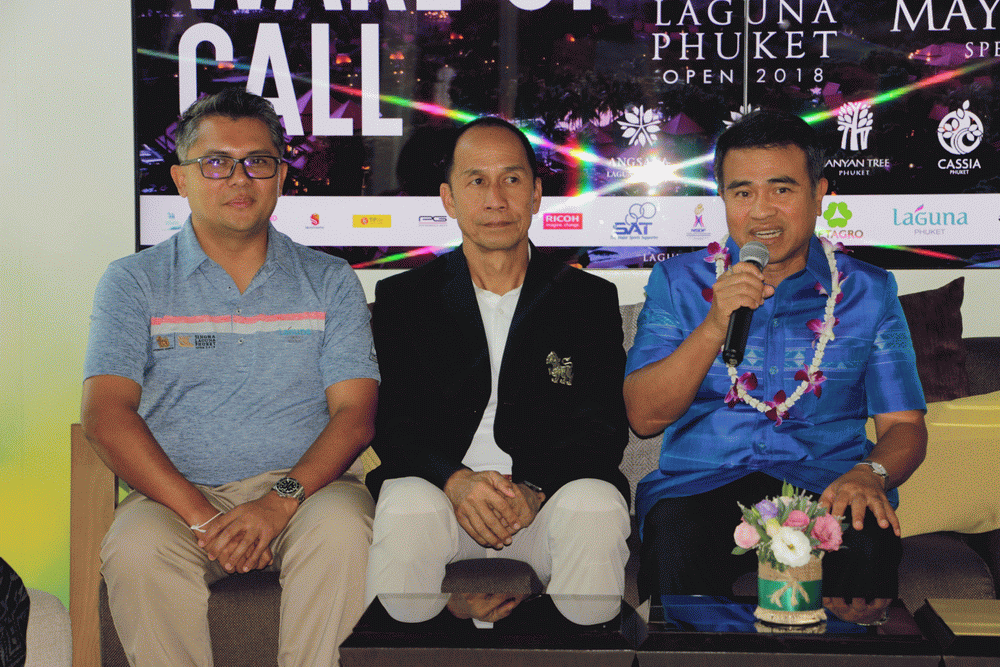 วันนี้ (18 เม.ย. 61) ที่ลากูน่าไลฟ์สไตล์ฮับ อ. ถลาง จ. ภูเก็ต นายนรภัทร ปลอดทอง ผู้ว่าราชการจังหวัดภูเก็ต เป็นประธานการแถลงข่าวการแข่งขันกอล์ฟอาชีพรายการ สิงห์ลากูน่าภูเก็ตโอเพ่น 2018 โดยมีนายจักรพงษ์ ทองใหญ่ ประธานกรรมการบริหารออลไทยแลนด์กอล์ฟทัวร์ นายดำรง จันทรอุไร ผู้จัดการสำนักงานกีฬาบริษัทสิงห์คอร์เปอเรชั่นจำกัด นายทวี ชานดราน กรรมการผู้จัดการกลุ่มลากูน่าภูเก็ต นายพอล วิลสัน ผู้ช่วยรองประธานกรรมการฝ่ายกอล์ฟ สนามกอล์ฟลากูน่ากอล์ฟภูเก็ตและนางกนกิตติกา กฤตย์วุฒิกร ผู้อำนวยการท่องเที่ยวแห่งประเทศไทยสำนักงานภูเก็ต หัวหน้าส่วนราชการและสื่อมวลชนเข้าร่วม นายจักรพงษ์ ได้กล่าวว่า มีโปรชั้นนำของไทยหลายคนที่สนใจเข้าร่วมรายการนี้ และอยากขอเชิญชวนให้ทุกท่านที่สนใจในกีฬากอล์ฟมาร่วมชมและเชียร์ผู้เข้าร่วมแข่งขันในงานนี้ด้วย