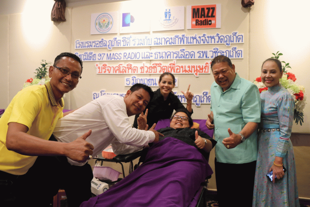 วันนี้ (5 มิ.ย. 62) ที่โรงแรมรอยัลภูเก็ตซิตี้ ได้มีการจัดกิจกรรมบริจาคโลหิตช่วยเหลือเพื่อนมนุษย์ขึ้น โดยมีนายธรรมวรรธ วงศ์เจริญยศ คณะกรรมการการกีฬาแห่งประเทศไทยและนายกสมาคมกีฬาแห่งจังหวัดภูเก็ต ผู้บริหารโรงแรมรอยัลภูเก็ตซิตี้ เจ้าหน้าที่ธนาคารเลือดโรงพยาบาลวชิระภูเก็ต พนักงานโรงแรม นักกีฬา นักเรียนนักศึกษา ตัวแทนชมรมสมาคมต่างๆและประชาชนทั่วไปเข้าร่วมบริจาคเลือดในครั้งนี้ นายธรรมวรรธ วงศ์เจริญยศ กล่าวว่า เนื่องจากปัจจุบันผู้ป่วยที่เข้ารักษาในโรงพยาบาลต่างๆทั้งในส่วนของภาครัฐและเอกชน อาทิ ผู้ป่วยอุบัติเหตุ ผู้ป่วยที่ต้องผ่าตัด หรือผู้ป่วยโรคเลือด มีจำนวนมากที่ต้องใช้เลือดมาในการช่วยรักษาชีวิตทำให้เลือดตามโรงพยาบาลต่าง ๆโดยเฉพาะโรงพยาบาลวชิระภูเก็ตซึ่งเป็นโรงพยาบาลขนาดใหญ่รวมไปถึงโรงพยาบาลอื่นๆที่มีผู้ป่วยเข้ารับการรักษาจำนวนมากต้องการเลือดในการช่วยชีวิตคนไข้ ยิ่งจำนวนผู้ใช้บริการมากเลือดสำรองตามธนาคารเลือดก็ลดลง เห็นได้ว่าปัจจุบันหลายๆหน่วยงานได้ให้ความสำคัญในเรื่องนี้จัดกิจกรรมรับบริจาคเลือดกันอย่างต่อเนื่อง ทางสมาคมกีฬาแห่งจังหวัดภูเก็ตและโรงแรมรอยัลภูเก็ตซิตี้และผู้เกี่ยวข้องเห็นความสำคัญในเรื่องนี้เป็นอย่างยิ่งจึงร่วมกันจัดโครงการบริจาคเลือดขึ้นเพื่อนำเลือดที่ได้รับบริจาคในครั้งนี้ส่งมอบให้กับทางธนาคารเลือดโรงพยาบาลวชิระภูเก็ตเก็บสำรองไว้เพื่อช่วยชีวิตผู้ป่วยต่อไป.