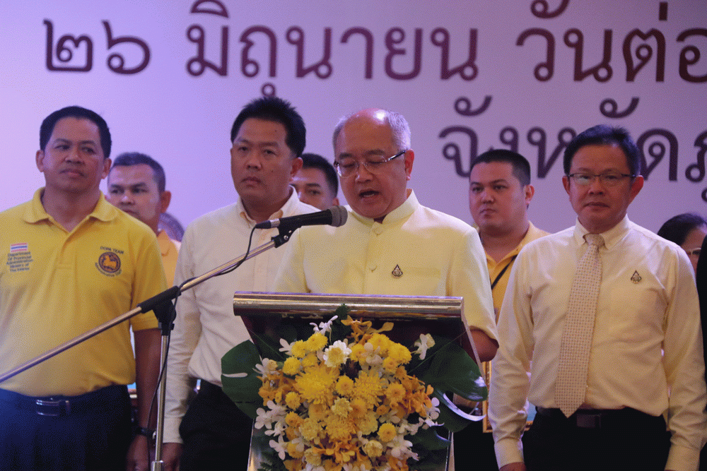 วันนี้ (26 มิ.ย. 62) ที่ศูนย์ประชุมมหาวิทยาลัยราชภัฏภูเก็ต อ. เมืองภูเก็ต จ.ภูเก็ต นายภัคพงศ์ ทวิพัฒน์ ผู้ว่าราชการจังหวัดภูเก็ต เป็นประธานการจัดกิจกรรมรณรงค์เนื่องในวันต่อต้านยาเสพติดโลกประจำปี 2562 จังหวัดภูเก็ต โดยมีนายสุพจน์ รอดเรือง ณ หนองคาย นายธัญญวัฒน์ ชาญพินิจ รองผู้ว่าราชการจังหวัดภูเก็ต นายอนุพงศ์ วาวงศ์มูล ปลัดจังหวัดภูเก็ต ส่วนราชการที่เกี่ยวข้อง นักเรียน นักศึกษา ประชาชน นักเรียน นักศึกษาเข้าร่วมกว่า 2,000 คน เข้าร่วม นายอนุพงศ์ กล่าวว่า ตามมติการประชุมสมัชชาใหญ่องค์การสหประชาชาติ เมื่อเดือนมิถุนายน 2530 กำหนดให้วันที่ 26 มิถุนายนของทุกปี เป็นวันต่อต้านยาเสพติดโลก ซึ่งประเทศไทยได้ยึดถือปฏิบัติและยืนยันเจตนารมณ์อย่างแน่วแน่ในการรณรงค์ต่อต้านยาเสพติด โดยมีหน่วยงาน/ องค์กรภาคีที่เกี่ยวข้องร่วมกันจัดกิจกรรมรณรงค์พิเศษต่อเนื่องตั้งแต่ปี 2530 จนถึงปัจจุบัน