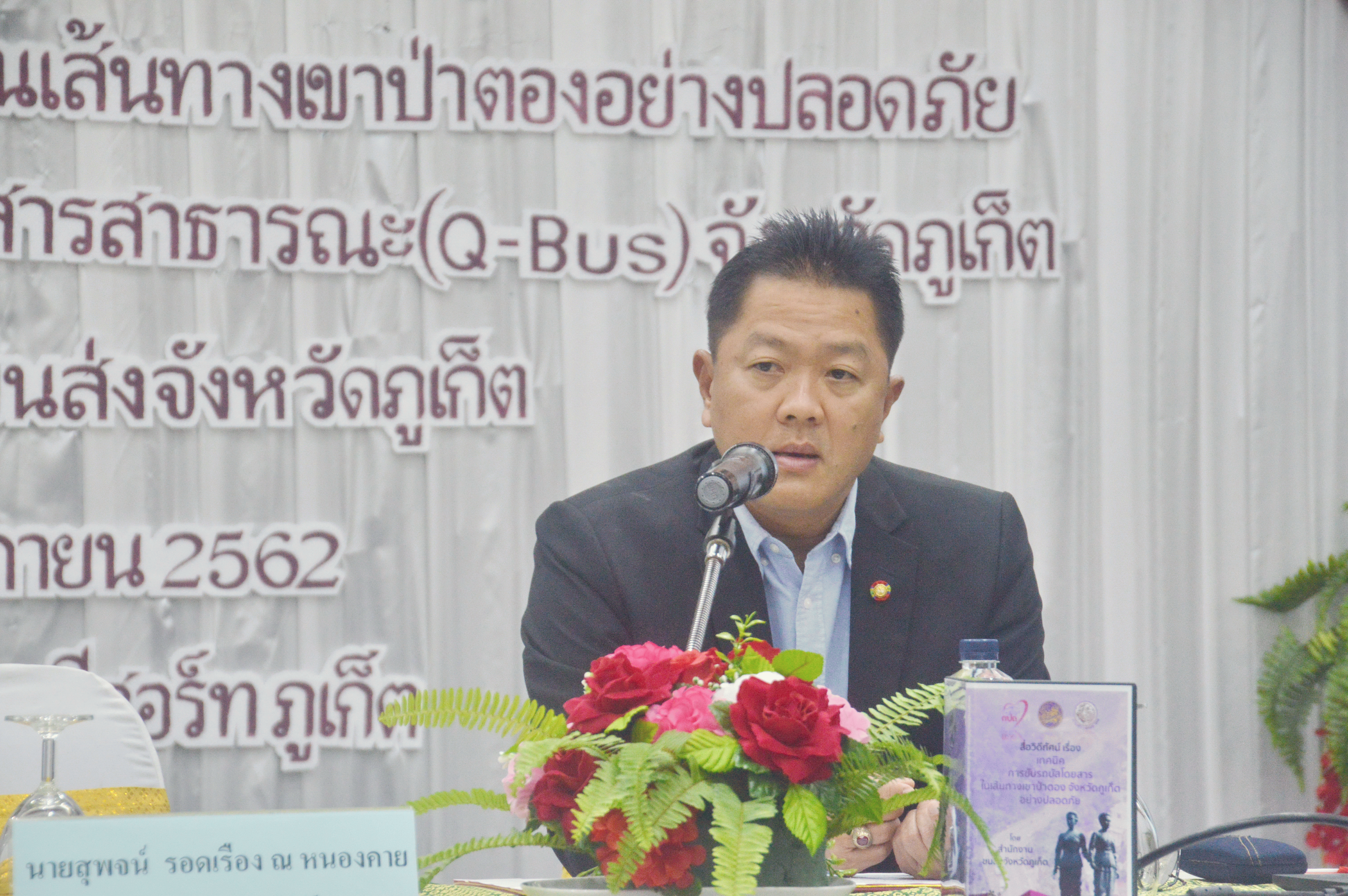 ด้านนายสุพจน์ กล่าวว่า จังหวัดภูเก็ตเป็นจุดหมายในการเดินทางของนักท่องเที่ยวทั้งภายในและภายนอกประเทศ ซึ่งเส้นทางที่ทุกคนต้องมาเยือนคือ หาดป่าตอง ซึ่งเส้นทางที่ไปหาดป่าตองล้วนเป็นเส้นทางที่ต้องขึ้นลงเขา มีความลาดชันเสี่ยงต่อการเกิดอุบัติเหตุ อันจะก่อให้เกิดความสูญเสียทั้งชีวิตและทรัพย์สินของนักท่องเที่ยวและประชาชนทั่วไป ส่งผลกระทบต่อภาพลักษณ์ด้านการท่องเที่ยวของจังหวัดภูเก็ตโดยเฉพาะเมื่อเกิดอุบัติเหตุขึ้นกับรถบัสโดยสารรับ-ส่งนักท่องเที่ยว การสัมมนาในวันนี้ นอกจากจะเป็นการป้องกันและลดอุบัติเหตุของรถบัสโดยสารแล้ว ยังเป็นการส่งเสริมอุตสาหกรรมการท่องเที่ยวของจังหวัดภูเก็ตให้มีศักยภาพยิ่งขึ้น สร้างความเชื่อมั่นในการเดินทางที่สะดวกและมีความปลอดภัยด้วยการยกระดับมาตรฐานการบริการรถโดยสารสาธารณะ (Q-Bus) ทั้งนี้ผู้ประกอบการขนส่งและพนักงานขับรถโดยสารสาธารณะไม่ใช่ผู้ที่ทำหน้าที่เพียงแค่รับส่งผู้โดยสารเท่านั้น แต่เป็นบุคคลสำคัญคนแรกที่ให้การต้อนรับนัอท่องเที่ยว การให้คำแนะนำ ดูแล มีน้ำใจให้ความช่วยเหลือแก่นักท่องเที่ยวดุจญาติมิตร จะสร้างความประทับใจและสร้างความเชื่อมั่นในความปลอดภัยแก่ผู้มาเยือน ทำให้เป็นที่กล่าวขวัญในทางที่ดีและกลับมาเยือนภูเก็ตอีกครั้ง