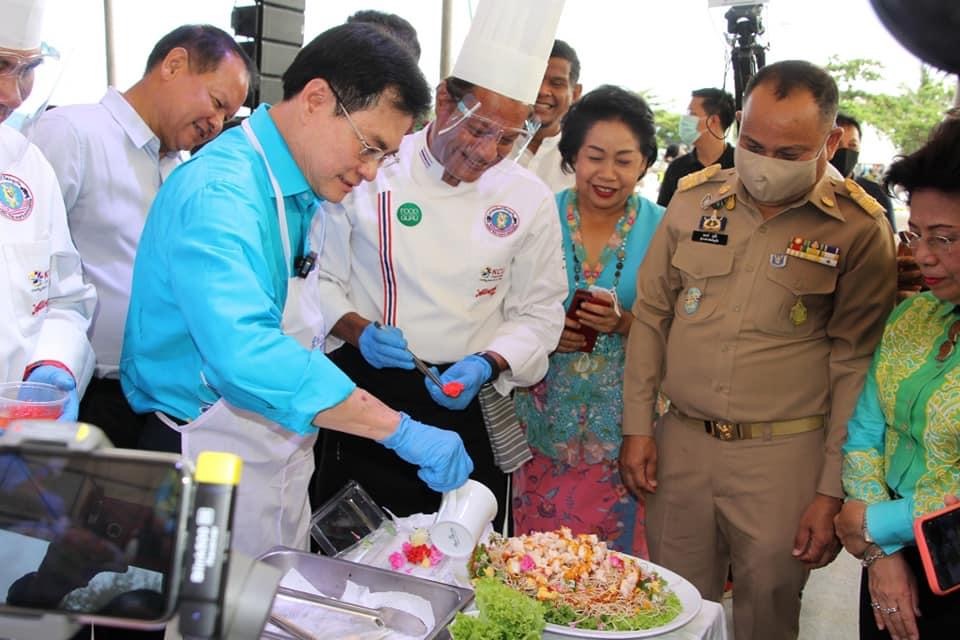 นอกจากนี้ นายจุรินทร์ ลักษณวิศิษฎ์ รองนายกรัฐมนตรีและรัฐมนตรีว่าการกระทรวงพาณิชย์ ได้เดินเยี่ยมชมบูธจำหน่ายสินค้าภายในงานพร้อมทักทายประชาชนชาวภูเก็ต เพื่อให้กำลังใจ ร่วมกันผ่านพ้นวิกฤติครั้งนี้ไปด้วยกัน ซึ่งระหว่างที่ นายจุรินทร์ ลักษณวิศิษฎ์ รองนายกรัฐมนตรีและรัฐมนตรีว่าการกระทรวงพาณิชย์ ได้เดินเยี่ยมชมบูธจำหน่ายสินค้าและทักทายประชาชนนั้น บนเวทีได้มีการเปิดตัวคนรุ่นใหม่ลูกหลานคนภูเก็ตที่ช่วยธำรงอัตลักษณ์วิถีของภูเก็ต จากต้นน้ำสู่ปลายน้ำ คือ น้องโจ้ ชาวประมงพื้นบ้านรุ่นใหม่หรือบุคคลต้นน้ำ น้องแจ้ เชฟรุ่นใหม่ ผู้รักษาตำรับและสูตรอาหารดั้งเดิมของภูเก็ตหรือบุคคลกลางน้ำ และน้องม่อน เชฟรุ่นใหม่ ผู้หยิบยกเอาอาหารพื้นบ้านมา twist เป็นเมนูสากล เพื่อเพิ่มมูลค่าให้อาหารในยุคปัจจุบัน หรือบุคคลปลายน้ำ ซึ่งทั้ง 3 ได้ร่วมกันรังสรรค์อาหารจากวัตถุดิบที่นำมาร่วมในพิธีเปิดซึ่งเป็นวัตถุดิบพื้นถิ่นของภูเก็ต เพื่อให้ประธานและแขกผู้มีเกียรติได้ร่วมชิม จากนั้น นายจุรินทร์ ลักษณวิศิษฎ์ รองนายกรัฐมนตรีและรัฐมนตรีว่าการกระทรวงพาณิชย์ ได้มอบข้าวสารให้แก่ประชาชนที่ได้รับผลกระทบจากสถานการณ์การแพร่ระบาดของโรคโควิด-19 เพื่อช่วยบรรเทาความเดือดร้อนในครั้งนี้