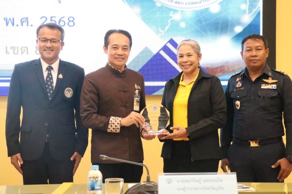 วันพฤหัสบดีที่ 25 กันยายน 2568 เวลา 10.00 12.00 น. ณ ห้องประชุมเจ้าฟ้า ชั้น 5 ศาลากลางจังหวัดภูเก็ต นายสมาวิษฎ์ สุพรรณไพ รองผู้ว่าราชการจังหวัดภูเก็ต เป็นประธานการประชุม โดยมีนายสุวัฒน์ เสาวรัญ ผู้อำนวยการสำนักงาน ป.ป.ช. จังหวัดภูเก็ต และคณะกรรมการเข้าร่วมประชุมอย่างพร้อมเพรียง ก่อนเข้าสู่วาระการประชุม มีพิธีมอบโล่รางวัล เครือข่ายต้นแบบในการป้องกันและเฝ้าระวังการทุจริต ประจำปีงบประมาณ 2568 จากสำนักงาน ปปท. เขต 8 ให้แก่ ชมรมสตรองจิตพอเพียงต้านทุจริตภูเก็ต เพื่อเชิดชูเป็นแบบอย่างด้านการป้องกันและลดปัญหาการทุจริตในพื้นที่